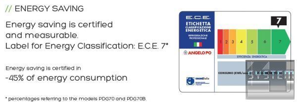 Angelo Po предлагает новую линейку холодильных/морозильных шкафов Green Planet, которая включает в себя 4 модели: PDG70, PDG70B, PDG150, PDG150B - энергоэффективные модели с современным дизайном, внешним испарителем, «умной» автоматической дефростацией и функцией Hyper Cold (быстрое охлаждение).