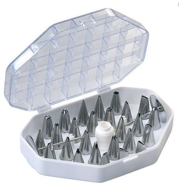 Набір кондитерських насадок 26 шт. виконані з високоякісної харчової нержавіючої сталі 18/10, якою характерні висока кислотостійкість та корозійностійкість.