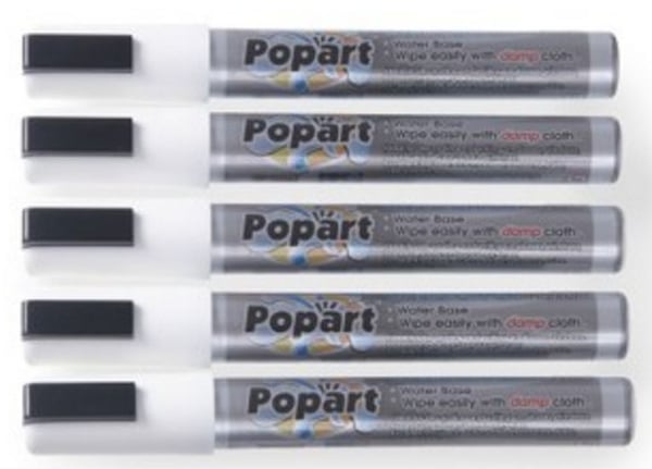 Набір маркерів для малювання складається з 5 крейд - білого кольору.