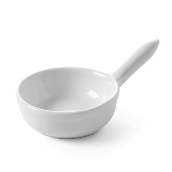 Набір мисок з 6 штук, круглої форми з ручкою, виготовлені з міцної білої порцеляни.