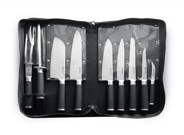 Набір з нержавіючих ножів знаходиться в стильному та зручному чохлі.