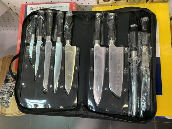 Відмінний набір ножів Hendi (9 ножів) стане незамінним помічником на кухні для кухаря-професіонала. Кухонні професійні ножі, які входять у набір, мають оригінальний дизайн, вони високої якості, функціональні та надійні.