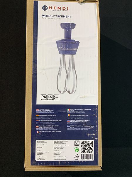 Насадка Hendi 222164 оснащена двома вінчиками. Завдяки своїй формі та високій швидкості обертання, міксер з насадкою-вінчиком дозволяє за короткий проміжок часу збити вершки, крем, суфле, а також омлети.