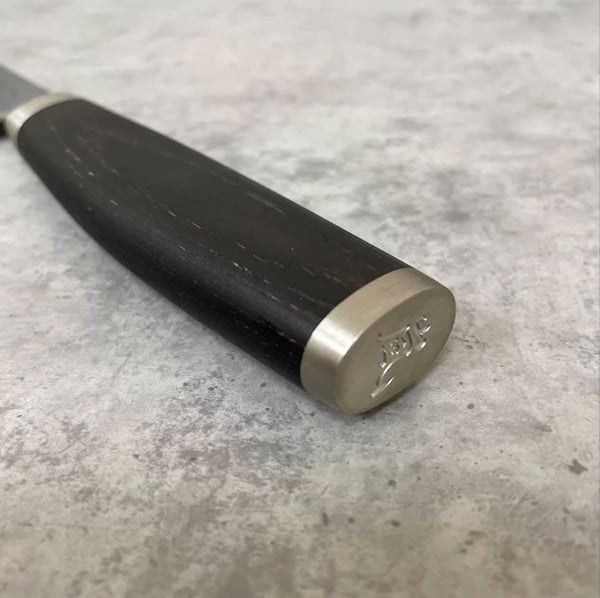 •В основі ножа високоякісна 3-шарова нержавіюча сталь VG10 з хвилястим візерунком KATANA, що чітко вимальовується на лезі.