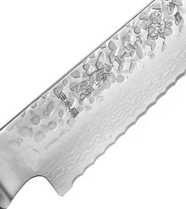 •В основі клинка є високоякісна сталь VG10 (кобальт, молібден, ванадій), покрита захисними обкладками з 36 шарів нержавіючої сталі з ефектним дамаським візерунком на лезі.