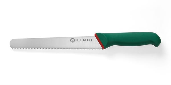 Кухонний ніж Hendi відноситься до сегменту професійного кухонного інвентарю для кафе, ресторанів та інших закладів громадського харчування. Основне призначення ножа для кухні – нарізка хлібобулочних виробів, але він універсальний і підходить для нарізування інших видів продуктів. Зубчасте лезо ножа дозволить швидко та акуратно розрізати торт, пиріг чи інший кондитерський виріб.