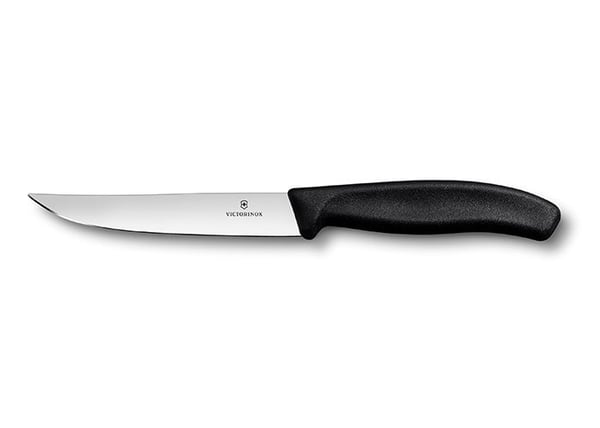 Швейцарський ніж для стейку Victorinox відноситься до сегменту професійного кухонного інвентарю для кафе та ресторанів. Він створений для тих, хто любить стейки, відбивні та смажене м'ясо. Завдяки гострому лезу, м'ясо легко можна нарізати швидко та акуратно.