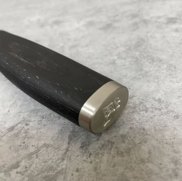 •В основі ножа високоякісна 3-шарова нержавіюча сталь VG10 з хвилястим візерунком KATANA, що чітко вимальовується на лезі.