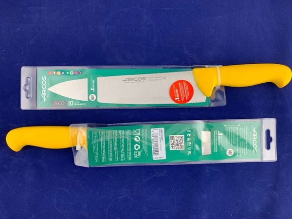 ГоловнаПосуд та кухонний інвентарПрофесійні ножі та дошкиПрофесійні кухонні ножіНіж кухарський Arcos 292200 серія 2900 жовтий 250 мм