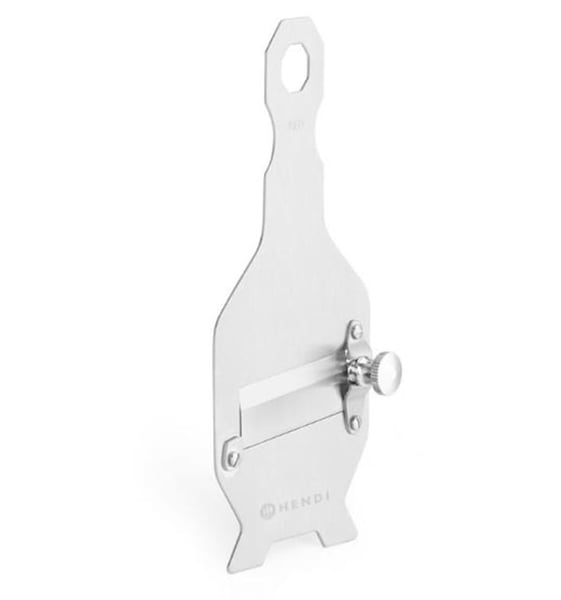 Лезо виконано з високоякісної нержавіючої сталі – твердість 55HRC. Товщина нарізки регулюється гвинтом від 0,2 до 3 мм.