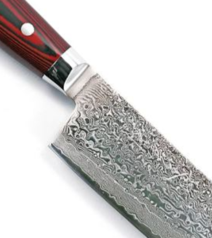• В основі клинків є високоякісна японська порошкова сталь SG2, покрита захисними обкладками з 160 шарів нержавіючої сталі з ефектним дамаським візерунком на лезі.