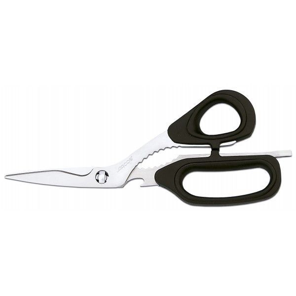 Ергономічні кухонні ножиці Arcos із серії Tijeras de cocina, виготовлені в комбінації з нержавіючої сталі та чорного пластику.
