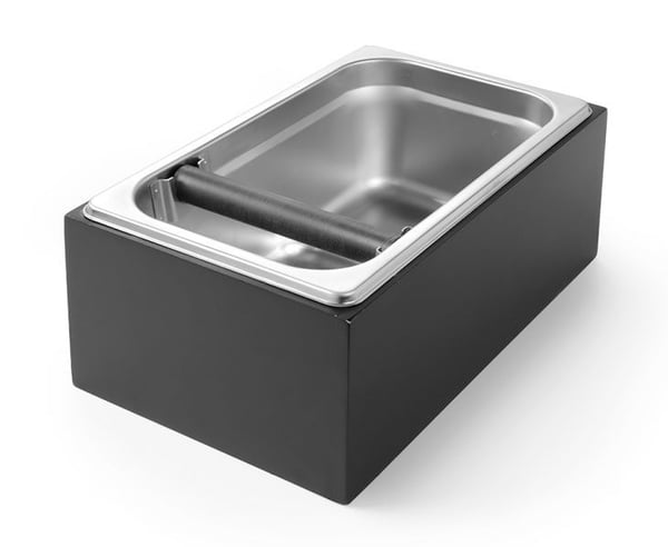 Нок-бокс - це один із головних атрибутів, що застосовується для роботи бариста з кавоваркою. Нок-бокс або ящик з гумовою перекладиною призначений для вибивання відпрацьованої кавової макухи з холдера (ріжка) та збору кавової гущі.