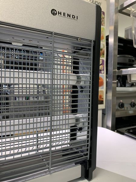 Пастка для комах Hendi обладнана двома ультрафіолетовими лампами. Корпус виконаний із пластику, робоча поверхня з алюмінію.