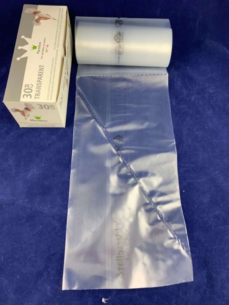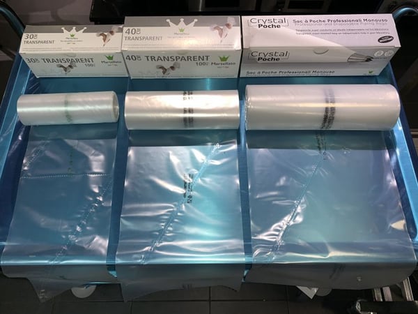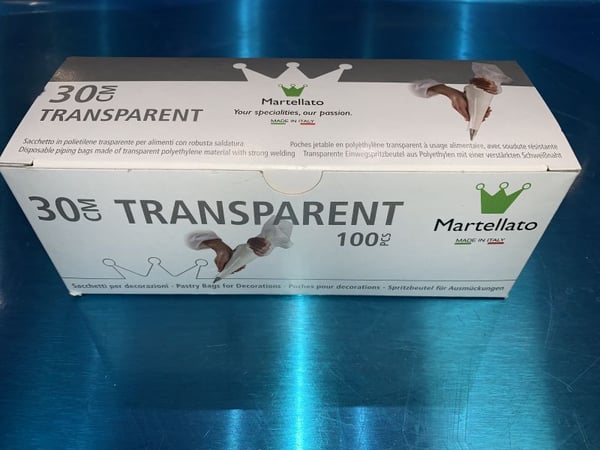 Виконані із надміцного прозорого поліетилену завтовшки 90 мікрон, що робить їх придатними навіть для найжорсткіших видів тіста, які можна наповнювати багато разів. Їх можна використовувати з гарячими та холодними сполуками, твердими або м'якими в шоковому охолодженні та мікрохвильовій печі.