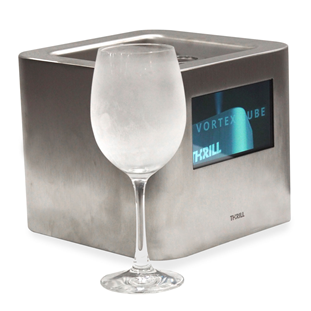 Охолоджувач келихів Thrill Vortex F1 Pro LCD — це унікальний чиллер, повністю виготовлений в Італії компанією Thrill International. Охолоджувач стерилізує та покриває скло найтоншим шаром льоду, перетворюючи келих у вишуканий аксесуар, який зберігає напій або коктейль холодним. Це професійний апарат, ідеально підходить для подачі найкращих напоїв: коктейлів, безалкогольних напоїв, пива, вина, шампанського тощо.