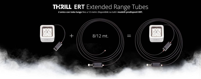 Усі моделі Thrill Vortex F1 SBI передбачають підключення до балона з CO2. Можна обрати один із двох варіантів підключення: стандартне (3 метри) або ERT (8 м чи 12 м). Система ERT (Extended Range Tubes) є унікальною у галузі й дозволяє розміщувати балон на відстані до 12 м від скляного морозильника, зберігаючи при цьому його охолоджувальні та дезінфікуючі властивості. Це унікальне рішення від Thrill International розроблене для тих, хто бажає розмістити балон із CO2 на віддаленій відстані від місця використання. Стандартна система інсталяції дає змогу встановити балон із CO2 на відстані до 2 метрів від приладу Vortex.