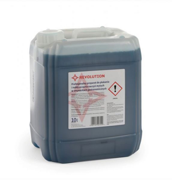 Рідина для ополіскування та сушіння посуду Revolution призначена для професійної посудомийної машини. Завдяки автоматичному дозування дозатором, засіб, що ополіскує, дуже економно витрачається. Після ополіскування та полірування, посуд та скло виглядають бездоганно чистими та блискучими, без будь-яких плям та розлучень. Ополіскуючий засіб Revolution використовується для посуду, столових приладів, скла, фарфору, пластику, нержавіючої сталі та алюмінію.