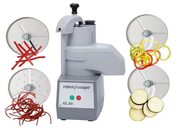 Професійна овочерізка Robot-Coupe CL 20 використовується на підприємствах громадського харчування та торгівлі для нарізки овочів, фруктів, грибів, твердого сиру та ковбас й подальшого використання їх як інгредієнтів для приготування супів, салатів, гарнірів тощо. Це компактна настільна модель, яку легко чистити та зберігати навіть на найменших кухнях. Заощаджуйте кілька годин ручної праці на день: подрібніть, натріть на тертці, використовуйте нарізку жульєн або хвилястими скибочками.