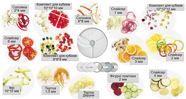 Повна колекція з 28 дисків із нержавіючої сталі з високою точністю заточування лез для ідеальної якості нарізки.