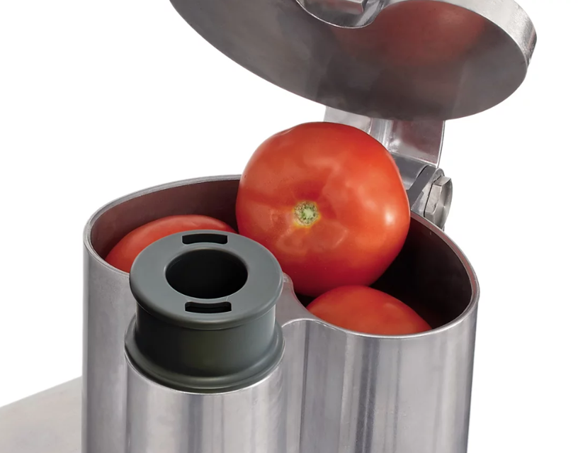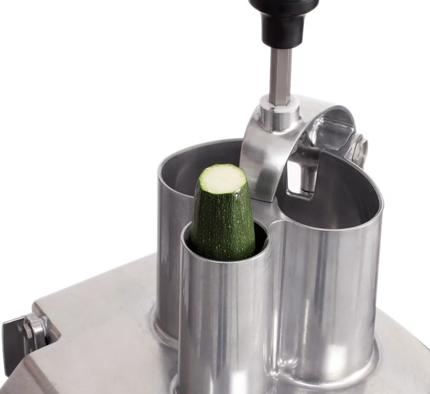 Циліндрична воронка (58 мм) призначена для довгих або делікатних овочів (наприклад, кабачків, огірків, грибів) та гарантує виняткову точність нарізки.