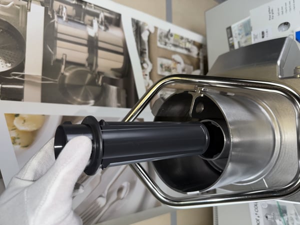 Циліндрична воронка (58 мм) призначена для довгих або делікатних овочів (наприклад, кабачків, огірків, грибів) та гарантує виняткову точність нарізки.