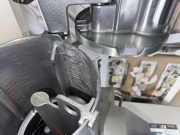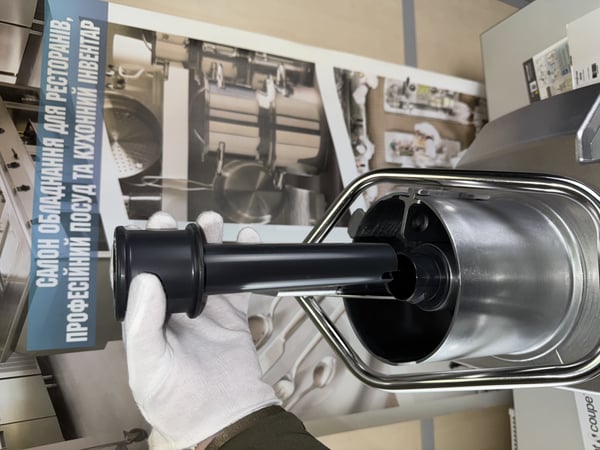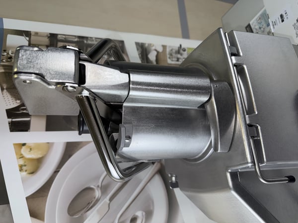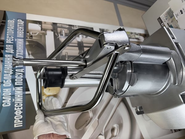 Моторний блок із нержавіючої сталі, розрахований на роботу з великою кількістю продуктів.