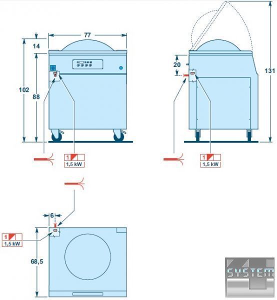 - Моделі з літерою "I" в кінці назви оснащені приставкою для пакування в середовищі інертних харчових газів