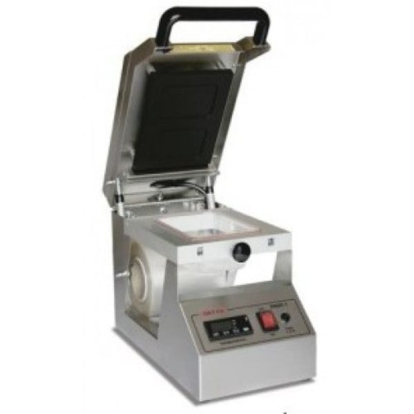 Машина термоупаковки лотків з електромеханічним керуванням має корпус з нержавіючої сталі. Машина має електронне регулювання температури. Запатентований саноковий механізм матриці дозволяє упаковувати лотки різних розмірів 137х190(95)мм. Кришка, що опускається і фіксується, гарантує запаювання з 4 сторін. Апарат підходить для пакування жирних продуктів.
