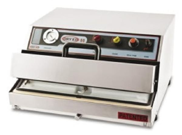 Машина для вакуумного пакування настільна з механічним керуванням, із системою зовнішнього відсмоктування під розрідженням має корпус із нержавіючої сталі. Довжина шва – 470мм. Номінальна швидкість насоса – 4м.куб./год. Кінцевий тиск – 0,002бар. Апарат оснащений вакуумним датчиком, таймером, системою автоматичного охолодження, електроклапаном для подачі повітря, кількома рівнями запаювання, вакуумним насосом, маслом, що змащується. Запаювання здійснюється витяжним дротом. Для пакування використовуються гладкі пакети.