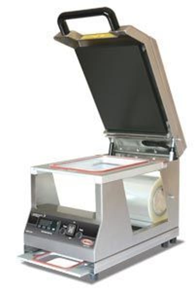 Orved Profi 2 упаковує продукти у лотки спеціальною термостійкою плівкою.