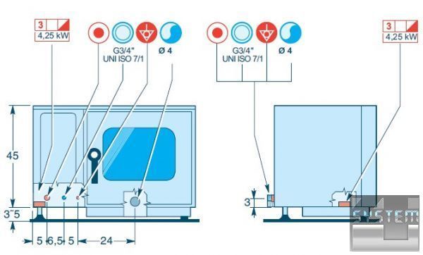 Камера пароконвектомата изготовлена по технологическим нормам, используемым при производстве полноразмерных пароконвектоматов семейства COMBISTAR. Двери толщиной 43 мм в сочетании с мощными петлями и сверхнадежным запором гарантируют безаварийную эксплуатацию на протяжении десятков лет.