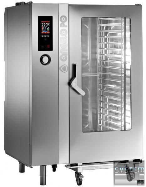 Пароконвектомат Angelo Po FX202E3: Электрический нагрев. Вместимость - GN 1/1 х 40, GN 2/1 х 20. Условная производительность - 560 блюд. Топ модель - уровень 3.