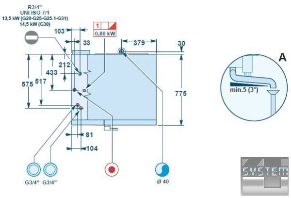 • газовый теплообменник изготовлен из комбинации стали AISI310S и AISI316;
