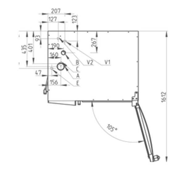 Внутрішнє скло дверцят і фіксатор внутрішнього скла. Забезпечений ванною для збору конденсату з внутрішнього скла з автоматичним зливом.