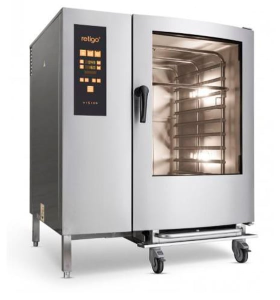 Універсальна пароконвекційна піч Ретіго підійде для всіх типів теплової обробки: запікання, підсмажування, гриль, гасіння, варіння на пару, приготування їжі при низьких температурах.