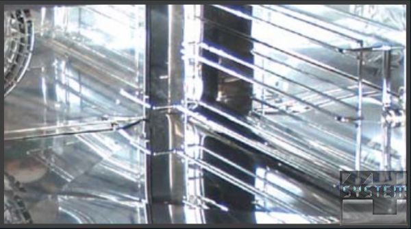 Потоки гарячого повітря завдяки особливим високошвидкісним і потужнішим вентиляторам рівномірно розподіляються в пекарній камері, забезпечуючи рівномірне пропікання продукту на всіх деках, що містяться в печі, і в кожній точці одного дека.