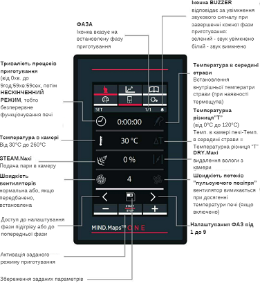 забезпечення ідеального рівня вологи в печі. Теплова обробка парою за температури від 35 до 130 °C