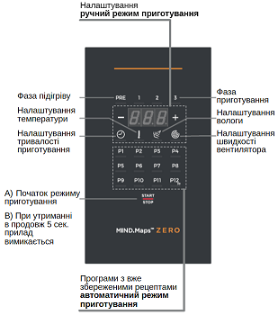 Дана піч має вбудовану пам'ять на 99 програми. Кожна програма може включати 3 етапи приготування. Завдяки 12-ти програмам, збереженим на панелі швидкого доступу, керування конвекційною пічкою економить дорогоцінний час роботи підприємства.