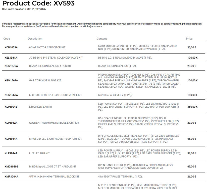 Рекомендований список деталей Unox XV593