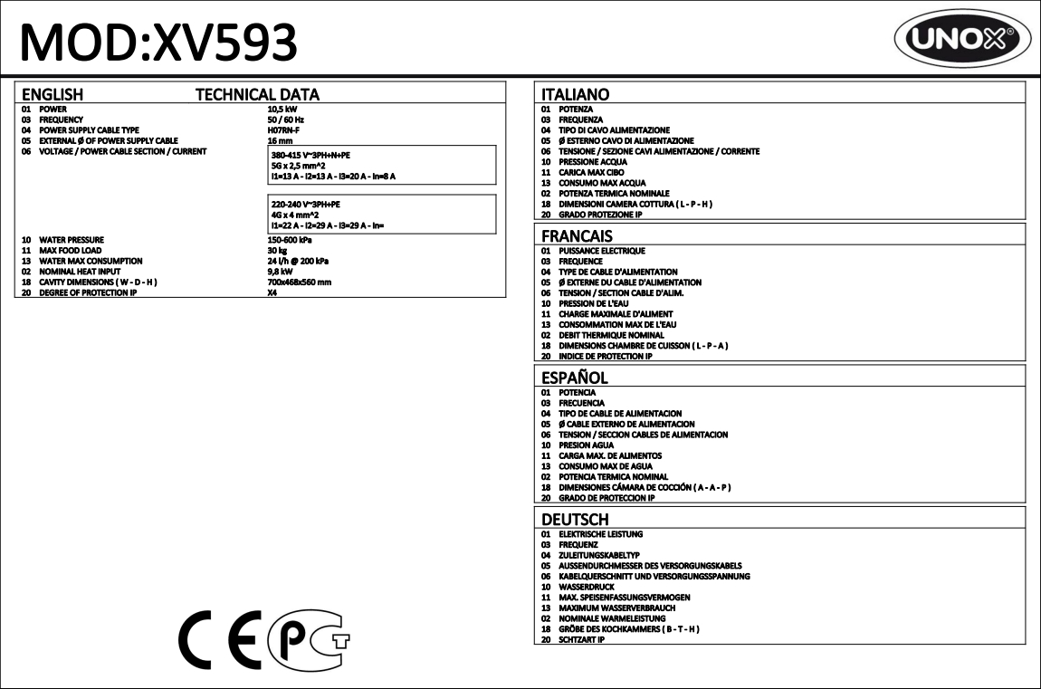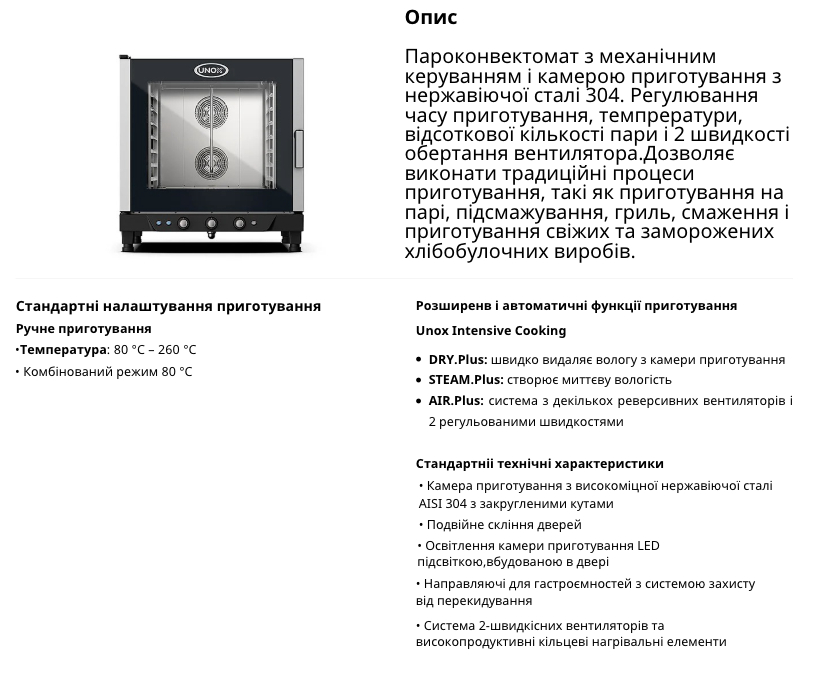Технічна інформація Unox XV593