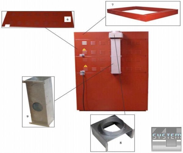 - Внутрішня камера - листовий метал покритий алюмінієм з вогнестійкою шамотовою цеглою.