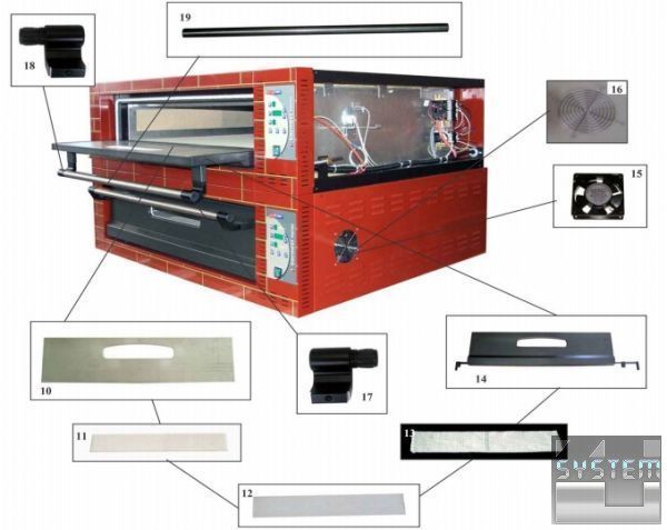 - Накладна система печі для однокамерної піци - безпроблемна надбудова до пекарських станцій для піци двокамерних або трикамерних.