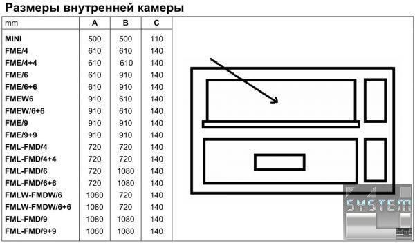 РОЗМІРИ ПІЧНОЇ КАМЕРИ 1080x1080x140h (mm)