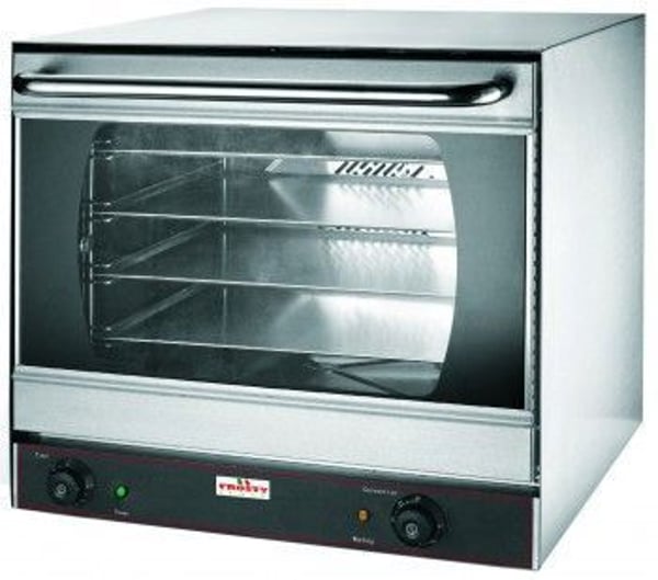 Потужний вентилятор гарантує швидкий та рівномірний розподіл тепла по всьому об'єму апарату. Корпус та внутрішня частина печі виконані з високоякісної нержавіючої сталі. Робоча температура печі від +0 до +300ºС. Модель вміщує ґрати 2шт. - 452х330 мм та листи 2 шт. - 452х330 мм. Внутрішнє підсвічування. Завдяки циркуляції гарячого повітря всередині печі, гарантується рівномірне приготування продукту з усіх боків. Пекти оснащена одним вентилятором. Потужність 3,20 кВт. Продуктивність продукції складає 10 кг на годину.