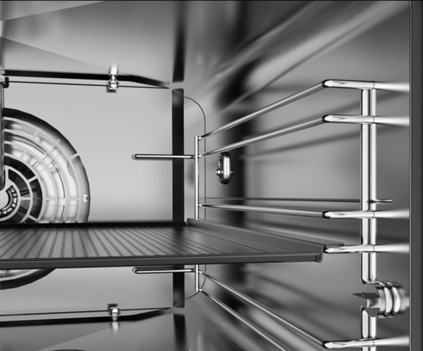 Чищення печі полегшується завдяки закругленим кутам пекарної камери і боковим напрямним, що легко знімаються.