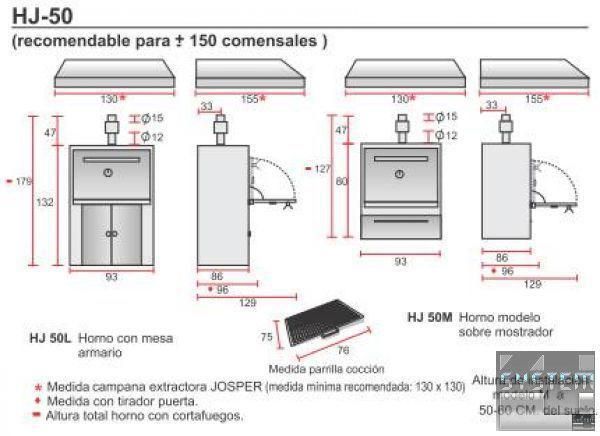 Пекти-гриль на закритому столі з дверцятами і витяжною парасолькою з вентилятором, дозволяє одночасно використовувати переваги печі та мангалу. Як паливо використовується чисте деревне вугілля. Приготування їжі здійснюється у закритій печі на ґратах. Допускається одночасне використання не більше 2-х грат. Пекти HJX-50/LC підійде для обслуговування ресторану зі 100 посадочними місцями. Виготовлена методом високоточного чавунного лиття (товщина стінки 5 см). Конструкція печі-грилю гарантує експлуатацію протягом 15-20 років без спеціального обслуговування. Для регулювання інтенсивності горіння служать шибер, стандартно встановлений на димарі печі і регульований колосник, розташований під ґратами, де відбувається згоряння вугілля. При установці в закритих приміщеннях конструкція печі гарантує її безпечну експлуатацію. Литі напрямні під ґрати дозволяють регулювати положення продукту щодо вугілля. Завдяки високим температурам час приготування страв у печі JOSPER дуже мало: - курячі ноги 3 хв. (7 кг, 2 грати); - Великі шматки яловичини 6 хв. (7 кг 2 грати); - Картопля цілком 10 хв. Служить для приготування всіх видів грилів та барбекю.