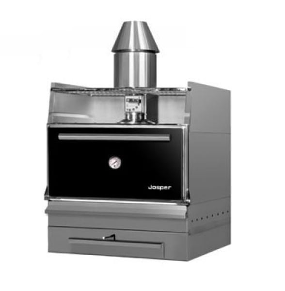 Пекти-гриль настільна, з верхньою відкритою полицею, з підставкою для деко, дозволяє одночасно використовувати переваги печі та мангалу. Як паливо використовується чисте деревне вугілля. Приготування їжі здійснюється у закритій печі на ґратах. Допускається одночасне використання не більше 2-х грат. Пекти HJX-50/M*BC підійде для обслуговування ресторану зі 100 посадочними місцями. Виготовлена методом високоточного чавунного лиття (товщина стінки 5 см). Конструкція печі-грилю гарантує експлуатацію протягом 15-20 років без спеціального обслуговування. Для регулювання інтенсивності горіння служать шибер, стандартно встановлений на димарі печі і регульований колосник, розташований під ґратами, де відбувається згоряння вугілля. При установці в закритих приміщеннях конструкція печі гарантує її безпечну експлуатацію. Литі напрямні під ґрати дозволяють регулювати положення продукту щодо вугілля. Завдяки високим температурам час приготування страв у печі JOSPER дуже мало: - курячі ноги 3 хв. (7 кг, 2 грати); - Великі шматки яловичини 6 хв. (7 кг 2 грати); - Картопля цілком 10 хв. Служить для приготування всіх видів грилів та барбекю.