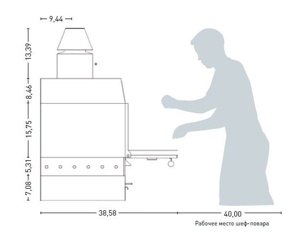 Пекти-гриль настільна, з верхньою відкритою полицею, з підставкою для деко, дозволяє одночасно використовувати переваги печі та мангалу. Як паливо використовується чисте деревне вугілля. Приготування їжі здійснюється у закритій печі на ґратах. Допускається одночасне використання не більше 2-х грат. Пекти HJX-25/M*BC підійде для обслуговування ресторану з 40 посадочними місцями. Виготовлена методом високоточного чавунного лиття (товщина стінки 5 см). Конструкція печі-грилю гарантує експлуатацію протягом 15-20 років без спеціального обслуговування. Для регулювання інтенсивності горіння служать шибер, стандартно встановлений на димарі печі і регульований колосник, розташований під ґратами, де відбувається згоряння вугілля. При установці в закритих приміщеннях конструкція печі гарантує її безпечну експлуатацію. Литі напрямні під ґрати дозволяють регулювати положення продукту щодо вугілля. Завдяки високим температурам час приготування страв у печі JOSPER дуже мало: - курячі ноги 3 хв. (7 кг, 2 грати); - Великі шматки яловичини 6 хв. (7 кг 2 грати); - Картопля цілком 10 хв. Служить для приготування всіх видів грилів та барбекю.