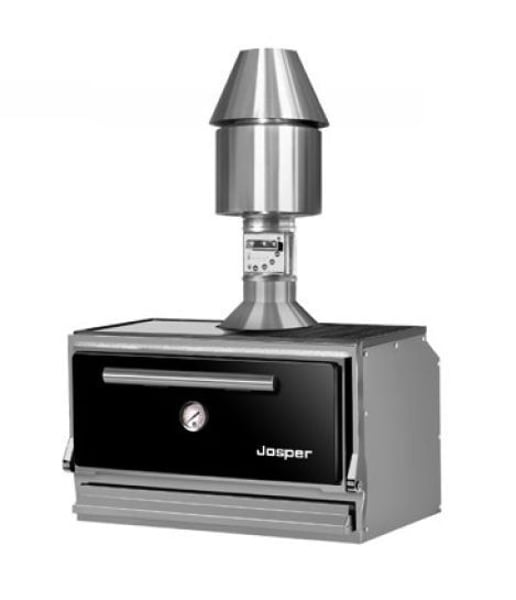 Пекти-гриль настільна, дозволяє одночасно використовувати переваги печі та мангалу. Як паливо використовується чисте деревне вугілля. Приготування їжі здійснюється у закритій печі на ґратах. Допускається одночасне використання не більше 2-х грат. Пекти HJX-38 підійде для обслуговування ресторану з 20 посадочними місцями. Виготовлена методом високоточного чавунного лиття (товщина стінки 5 см). Конструкція печі-грилю гарантує експлуатацію протягом 15-20 років без спеціального обслуговування. Для регулювання інтенсивності горіння служать шибер, стандартно встановлений на димарі печі і регульований колосник, розташований під ґратами, де відбувається згоряння вугілля. При установці в закритих приміщеннях конструкція печі гарантує її безпечну експлуатацію. Литі напрямні під ґрати дозволяють регулювати положення продукту щодо вугілля. Завдяки високим температурам час приготування страв у печі JOSPER дуже мало: - курячі ноги 3 хв. (7 кг, 2 грати); - Великі шматки яловичини 6 хв. (7 кг 2 грати); - Картопля цілком 10 хв. Служить для приготування всіх видів грилів та барбекю.